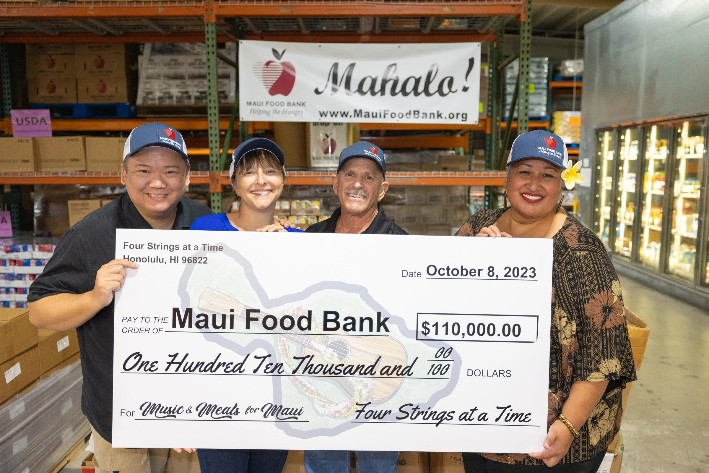 Our first check to Maui Food Bank after our Music & Meals for Maui Benefit Concert and 1st round of Online Auctions, hosted by The Ukulele Site.